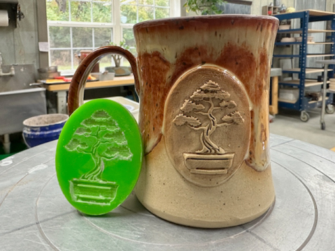 You can literally sign your name on a scrap piece of paper, scan it, resize it, and cut the negative so it stamps cleanly in the clay. One of the first projects was a stamp of my bonsai logo I made for mugs I give to friends and family around the holidays. I also offer these on my website in a limited and numbered release.